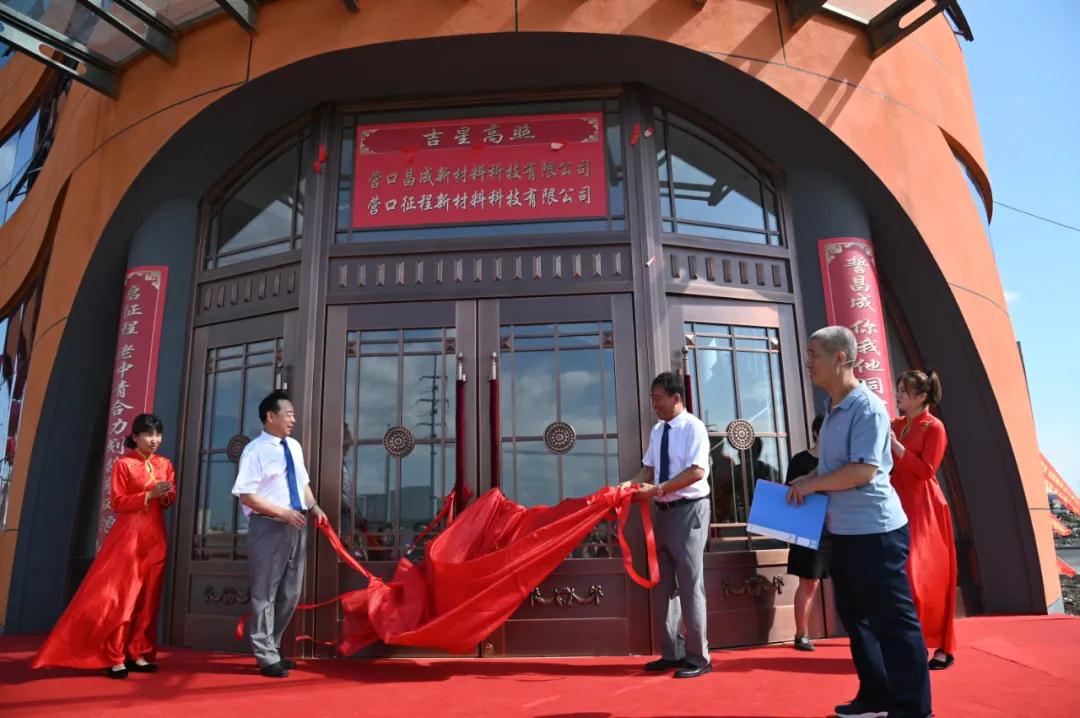 2021年7月20日,昌成新材廠區(qū)外彩旗飄揚(yáng)、彩虹門佇立,新落成的辦公樓前,16個(gè)氫氣球帶著紅色的祝賀彩帶迎風(fēng)飛舞,東門兩側(cè)張貼著鮮紅的對(duì)聯(lián):?jiǎn)⒄鞒汤现星嗪狭潣孙L(fēng)浪,誓昌成你我他同心揮毫繪江山,橫批:吉星高照,一樓員工食堂大廳人聲鼎沸、紅毯鋪地、綠植盎然,歡快的音樂縈繞四壁。昌成新材和征程新科辦公樓落成入住典禮將在這里隆重舉行。