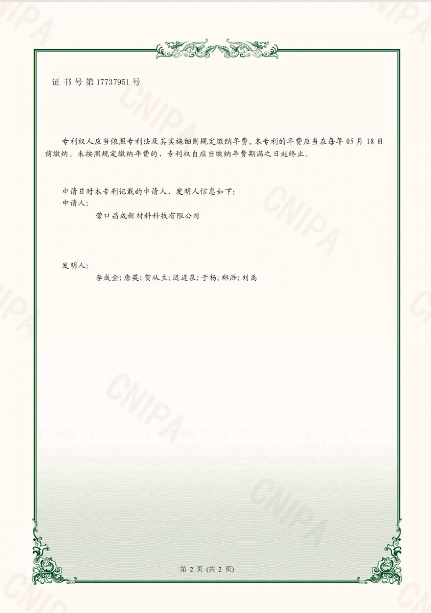 Copyright(C)2021,Yingkou Changcheng New Material Technology Co., Ltd. All Rights Reserved.