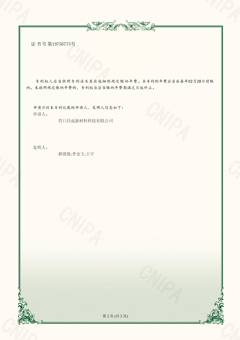 營(yíng)口昌成新材料科技有限公司 版權(quán)所有(C)2021?網(wǎng)絡(luò)支持?中國(guó)化工網(wǎng)?全球化工網(wǎng)?生意寶?網(wǎng)盛建站?著作權(quán)聲明  遼ICP備2021005949號(hào)